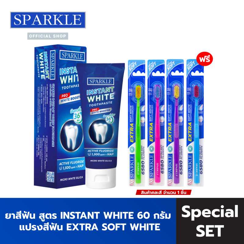 [NEW] SPARKLE ยาสีฟัน INSTANT WHITE 60 กรัม แถมฟรี! แปรงสีฟัน EXTRA SOFT WHITE TOOTHBRUSH มูลค่า 89.- (คละสี)