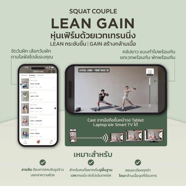 - โปรแกรม LEAN GAIN ใช้ได้ทุกที่ผ่านแอป Playbook ทั้งระบบ iOS และ Android