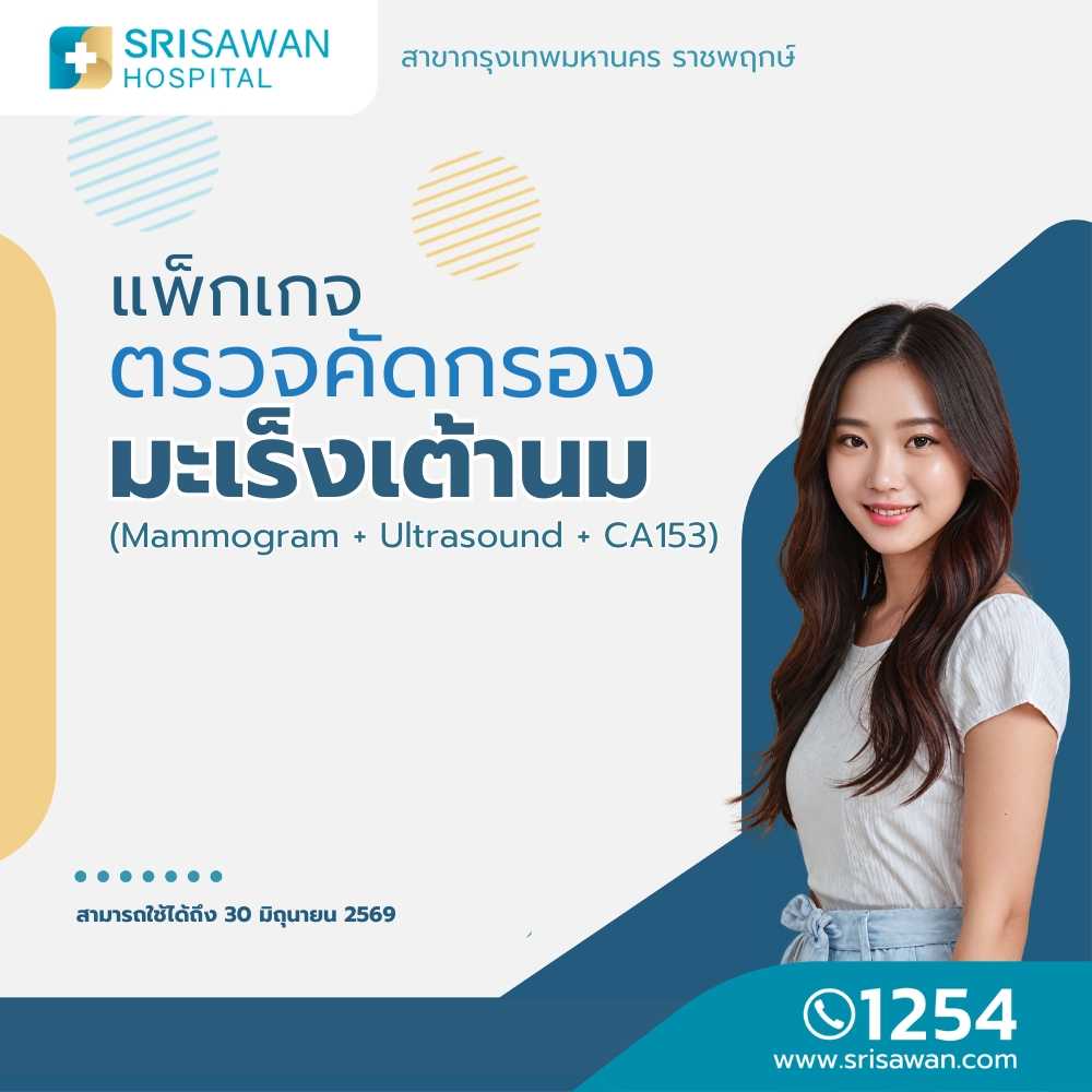 - ตรวจคัดกรองมะเร็งเต้านม (Mammogram + Ultrasound Breast+ + สารบ่งชี้มะเร็งเต้านม CA153)