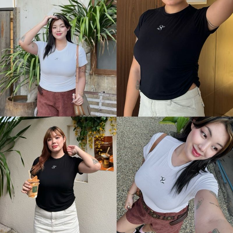 ✨Samesize baby T mini logo ✨ เสื้อเบบี้ทีสาวอวบ ดีเทลย่นข้างพรางหุ่น สีขาว
