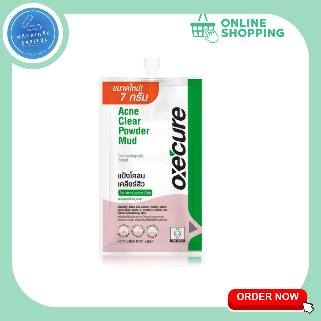 Oxe Cure Acne Clear Powder Mud [7g ] แป้งโคลนสำหรับผิวที่มีปัญหาสิว สูตรใหม่จากประเทศญี่ปุ่น เข้มข้นด้วย Salicylic acid 2% และส่วนผสมที่มีประสิทธิภาพนานาชนิดอย่าง Zinc PCA, Niacinamide (B3) และ Aloe Vera Extract มีส่วนช่วยบำรุงผิวที่มีปัญหาสิว ทำให้จุดด่างดำแลดูจางลง ช่วยขจัดเซลล์ผิวเสื่อมสภาพ พร้อมบำรุงให้ผิวชุ่มชื้น ด้วยนวัตกรรม Encapsulated Multi-Acne Care มีส่วนช่วยควบคุมความมัน อันเป็นสาเหตุหนึ่งของการเกิดสิวโดยไม่ทำให้ผิวหน้าระคายเคือง