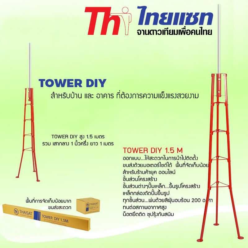 Thaisat ชุดเสาทาวเวอร์ TOWER DIY สูง 1.5 เมตร + เสากลางยาว 1 เมตร ติดตั้งง่าย สะดวก