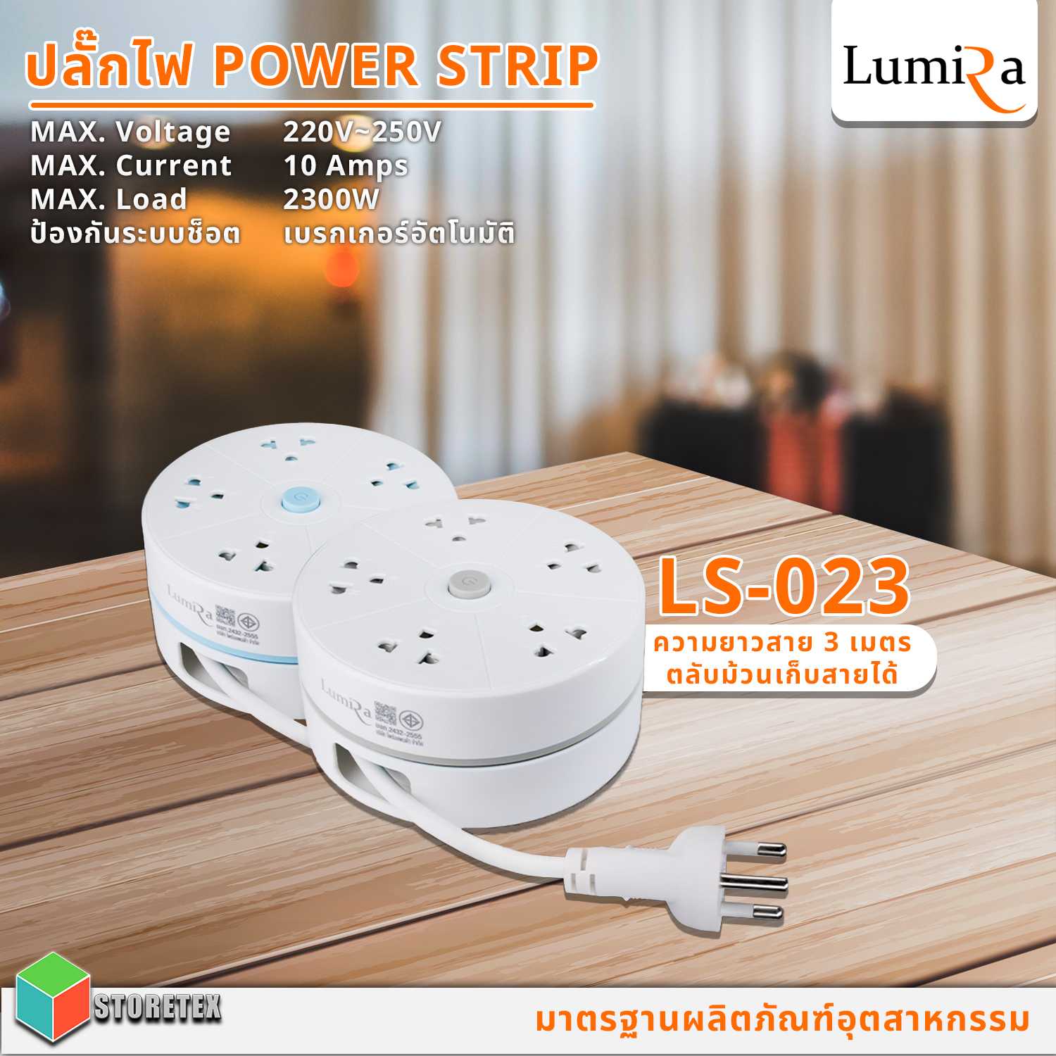 Plug Lumira LS-023 ความยาวสาย 3 เมตรมาพร้อมกับตลับม้วนเก็บสายอย่างดี