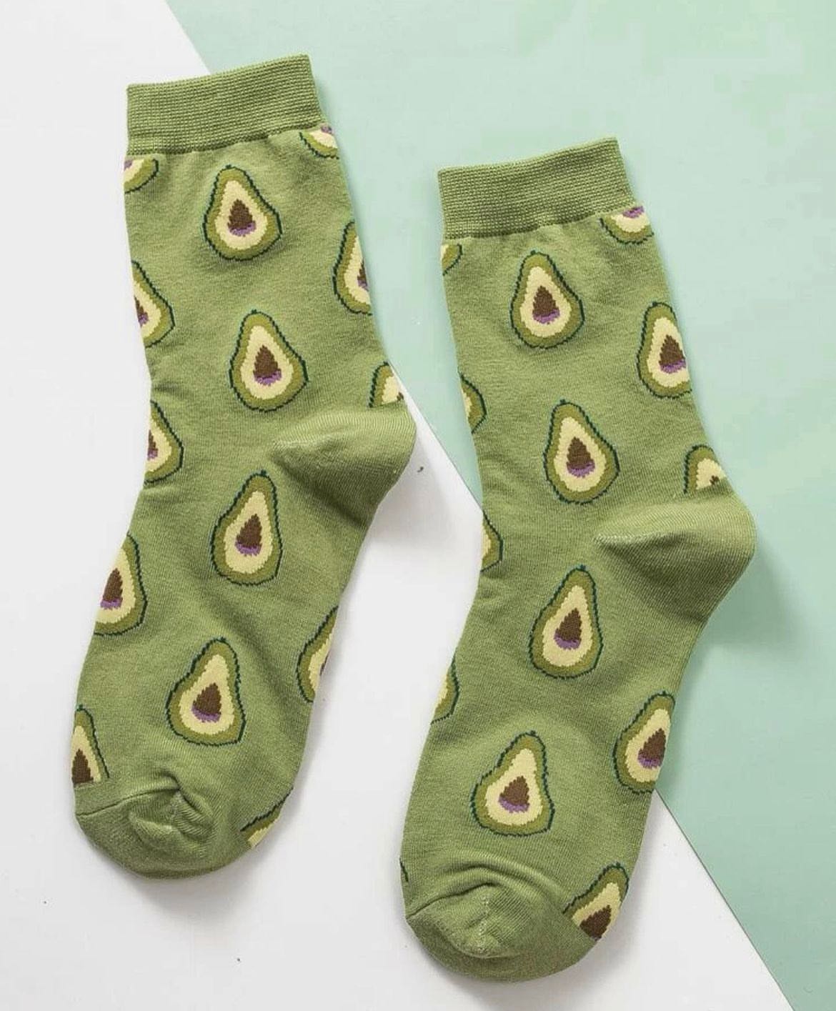 Avocado socks (1 pair) ถุงเท้า สีมินิมอล ลายอาโวคาโด้ ชิคๆน่ารักมากๆค่ะ 🥑