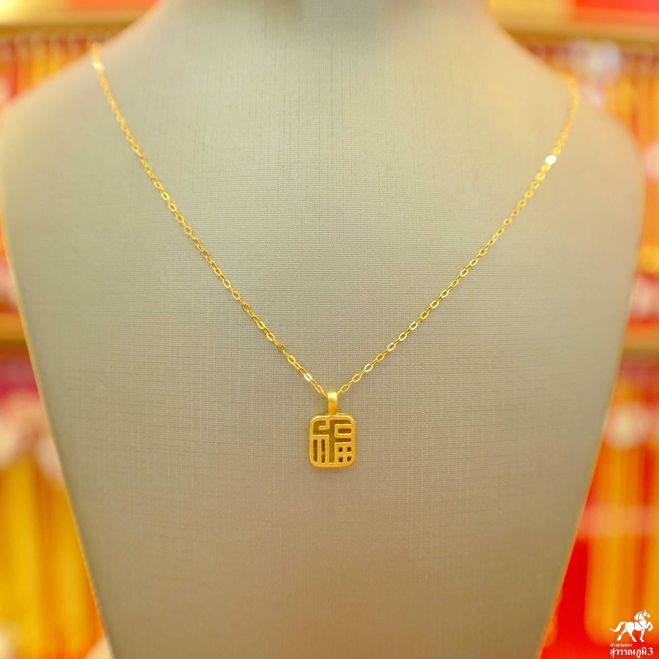สร้อยคอจี้อักษรจีนฝู 3D(福 3D) น้ำหนัก 0.5 กรัม ทองคำ 99.99% ชาร์ม ทองแท้ๆทั้งเส้น ขายได้ มีใบรับประกันจากร้านทอง นิยมที่สุด