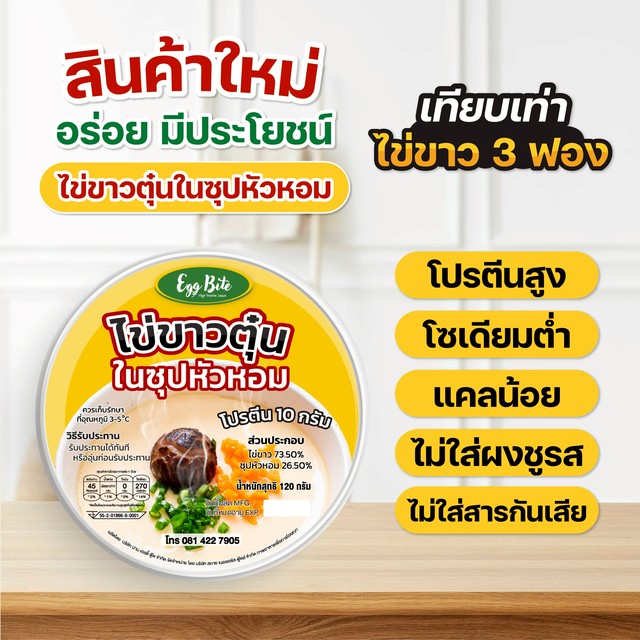 Egg Bite ไข่ขาวตุ๋นในซุปหัวหอม 120 กรัม โปรตีนสูง โซเดียมต่ำ อาหารเหลวผู้ป่วย อาหารเสริมผู้ป่วยไต