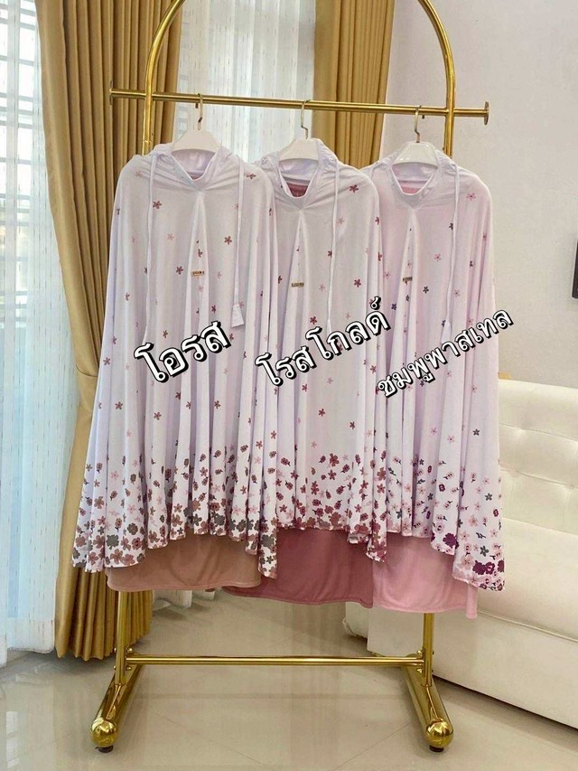 รายละเอียดชุด เนื้อผ้า Cotton. Viscose gred Aผ้านิ่ม ทิ้งตัว ไม่ง้อเตารีดลายชุด :พื้นขาวลายดอกซากุระสี ทรงหน้ายางยืดสามารถยืดได้ตามรูปหน้า