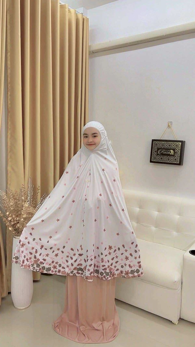 ตะละกงเด็ก ชุดละหมาดเด็ก ชุดใส่ละหมาดเด็ก ผ้าละหมาดสำหรับเด็กอิสลาม รุ่น ดอกซากุระ สำหรับเด็ก9-13ปี