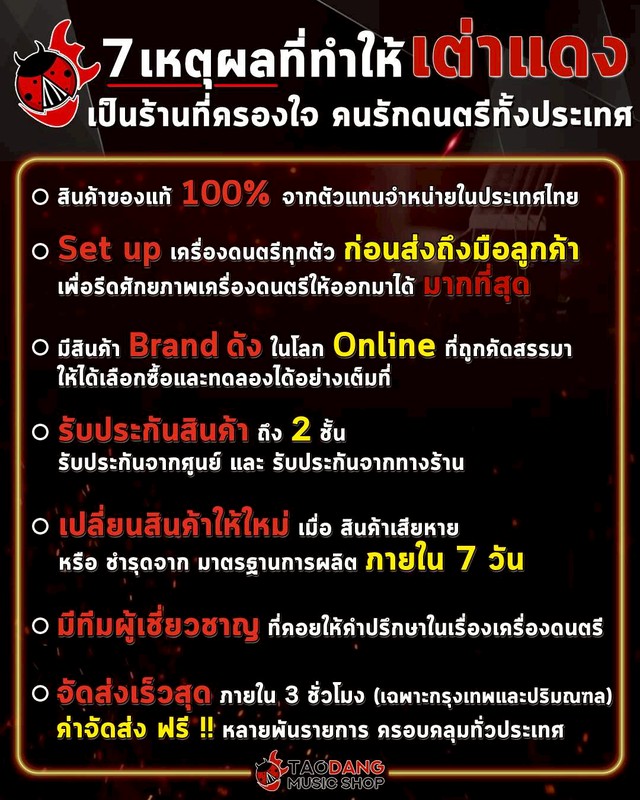 ✅ Set up เครื่องดนตรีทุกตัว ก่อนส่งถึงมือลูกค้า เพื่อ รีดศักยภาพเครื่องดนตรีให้ออกมาได้มากที่สุด