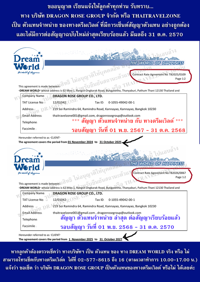 ❌❌ ทางดรีมเวิลด์ ไม่อนุญาตให้รับจองด่วนหน้างาน...ทุกกรณี ❌❌