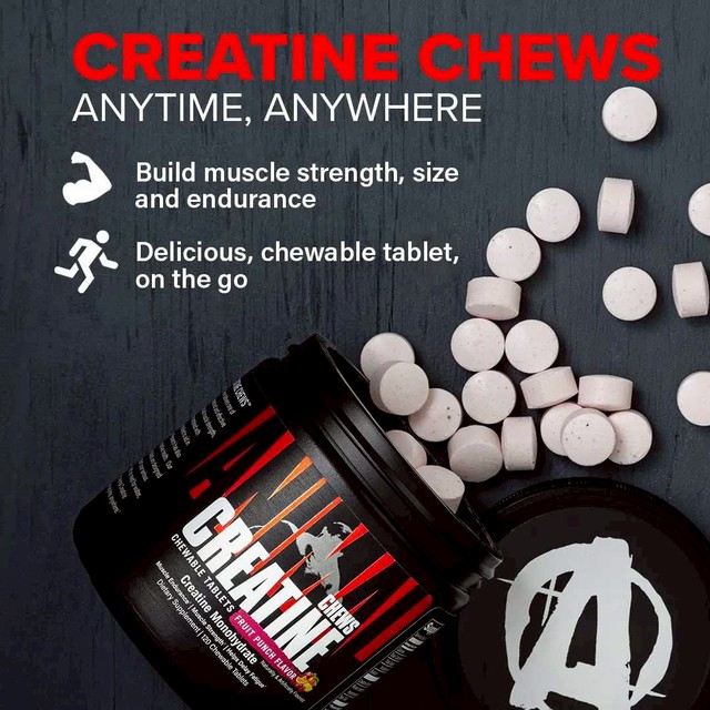 Universal's Creatine Chews provide the purest Creapure creatine monohydrate in a convenient and tasty chewable. Creatine Chews are designed with a special tri-glycemic carbohydrate matrix that creates the necessary metabolic environment needed to help enhance the uptake of creatine by muscle cells.* With Creatine Chews, there´s never been a better or easier way to get your creatine