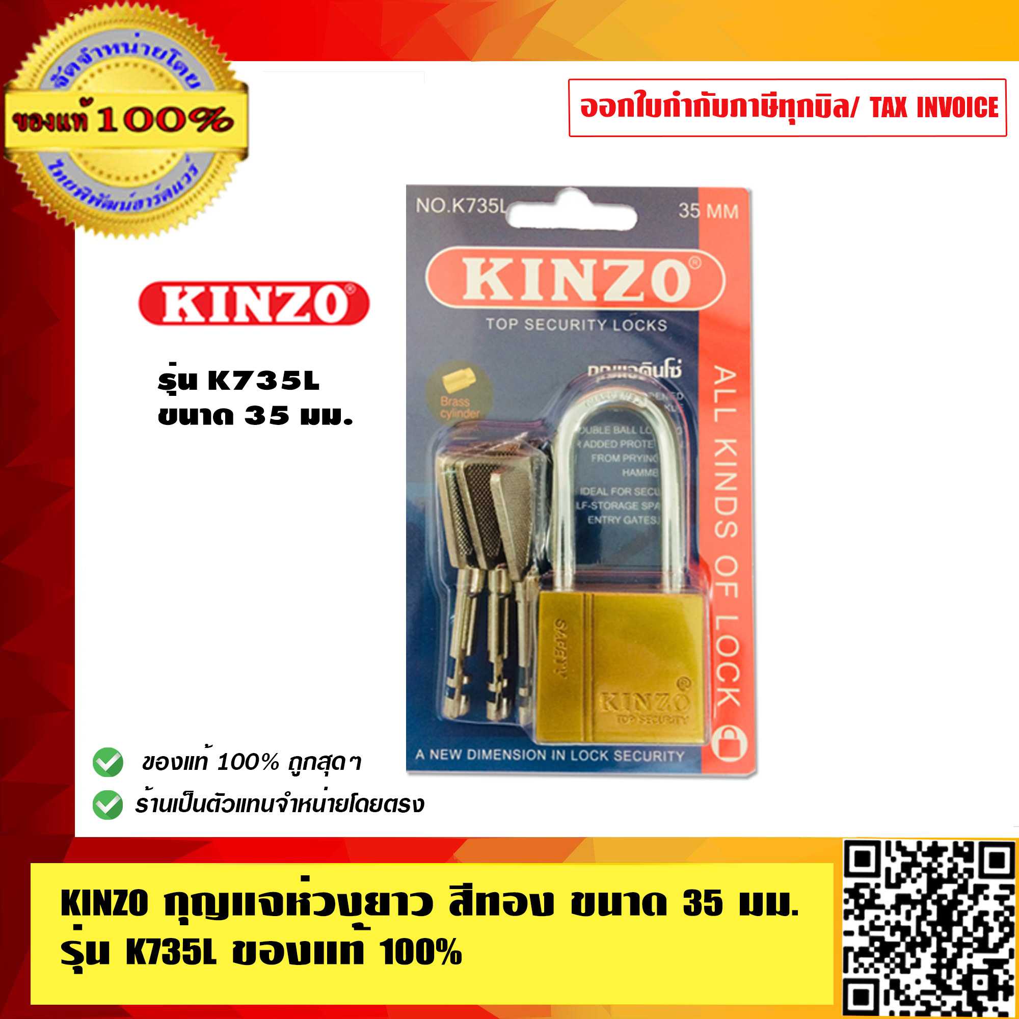 KINZO กุญแจห่วงยาว สีทอง ขนาด 35 มม. รุ่น K735L ของแท้ 100%