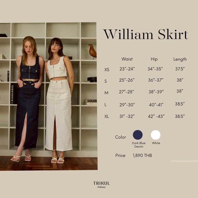 Ordinary - William Skirt กระโปรงยีนส์ยาว