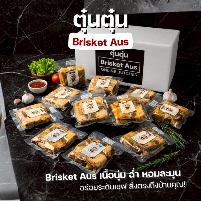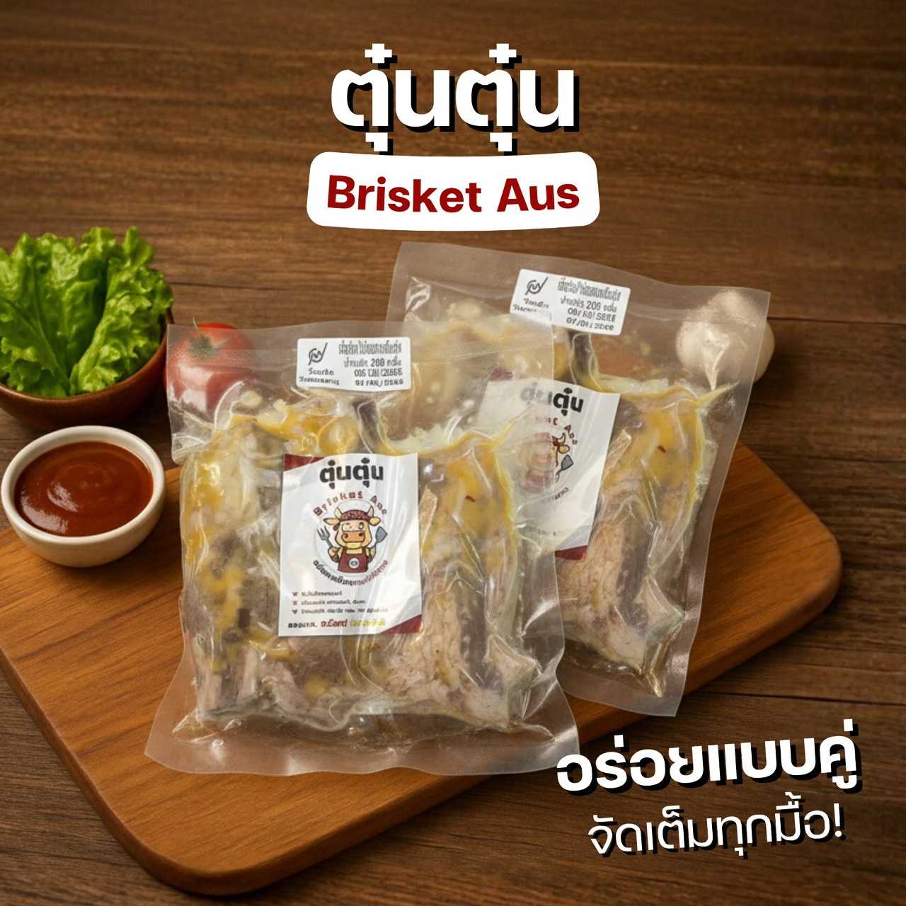 ตุ๋นตุ๋น Brisket Aus คัดสรรเนื้อบริสเกตออสเตรเลีย ชั้นดี เคี่ยวด้วยสูตรลับเฉพาะ จนได้เนื้อที่นุ่มฉ่ำ มั่นใจในคุณภาพ สะอาด ปลอดภัย เราใช้ใจในการตุ๋นทุกชิ้น ปริมาณ 200 กรัม.