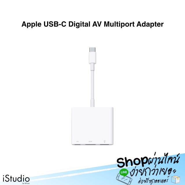 Apple USB-C Digital AV Multiport Adapter Model : MUF82ZA/A อะแดปเตอร์มัลติพอร์ต Digital AV แบบ USB-C อะแดปเตอร์มัลติพอร์ต Digital AV แบบ USB-C ให้คุณเชื่อมต่อ Mac หรือ iPad Pro ที่รองรับ USB-C กับจอภาพ HDMI รวมถึงเชื่อมต่อกับอุปกรณ์ USB แบบมาตรฐานและสายชาร์จ USB-C พร้อมกัน อะแดปเตอร์นี้ช่วยให้คุณสามารถสะท้อนหน้าจอเครื่อง Mac / iPad Pro ของคุณไปยังทีวีที่รองรับ HDMI หรือจอภาพ เพียงแค่ต่ออะแดปเตอร์เข้ากับพอร์ต USB-C หรือ Thunderbolt 3 (USB-C) บน Mac หรือ iPad Pro จากนั้นต่อเข้ากับทีวีหรือโปรเจ็กเตอร์ผ่านสาย HDMI (จำหน่ายแยกต่างหาก) ใช้พอร์ต USB มาตรฐานเพื่อเชื่อมต่ออุปกรณ์ต่างๆ เช่น แฟลชไดรฟ์หรือกล้อง หรือสาย USB เพื่อซิงค์และชาร์จอุปกรณ์ iOS ของคุณ และคุณยังสามารถต่อสายชาร์จกับพอร์ต USB-C เพื่อชาร์จ Mac หรือ iPad Pro ได้ด้วย การรับประกันสินค้า : 1 ปี จากการใช้งานปกติ โดยศูนย์บริการ Apple ทั่วโลก