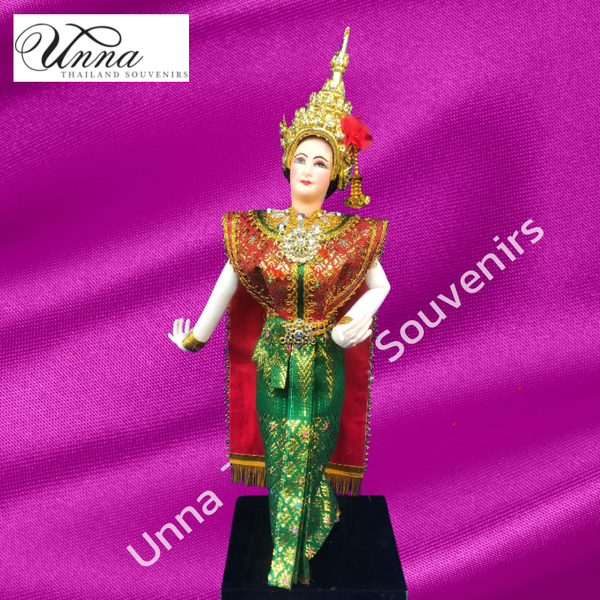 ตุ๊กตานางรำ ใส่ชุดไทย ตุ๊กตาตั้งศาล ถวายศาล งานฝีมือ ของที่ระลึกไทย ของฝากเพื่อนต่างชาต สวมชฎาสีท...