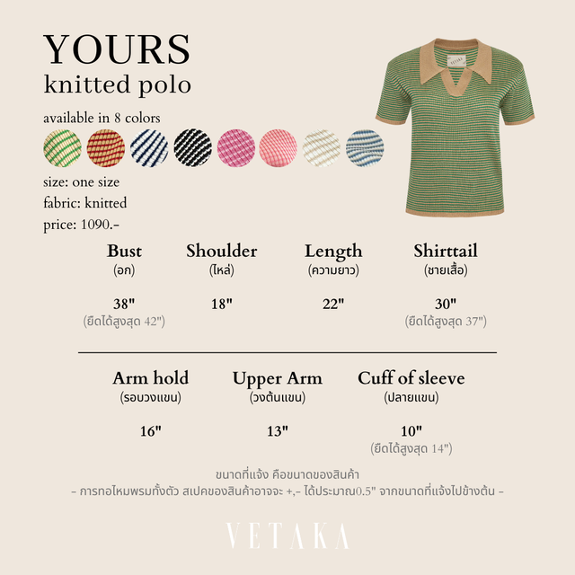สีดำ, เขียว, แดง, ฟ้า ส่ง10พย VETAKA YOURS Knitted polo (เสื้อโปโลไหมพรม ทอลาย)