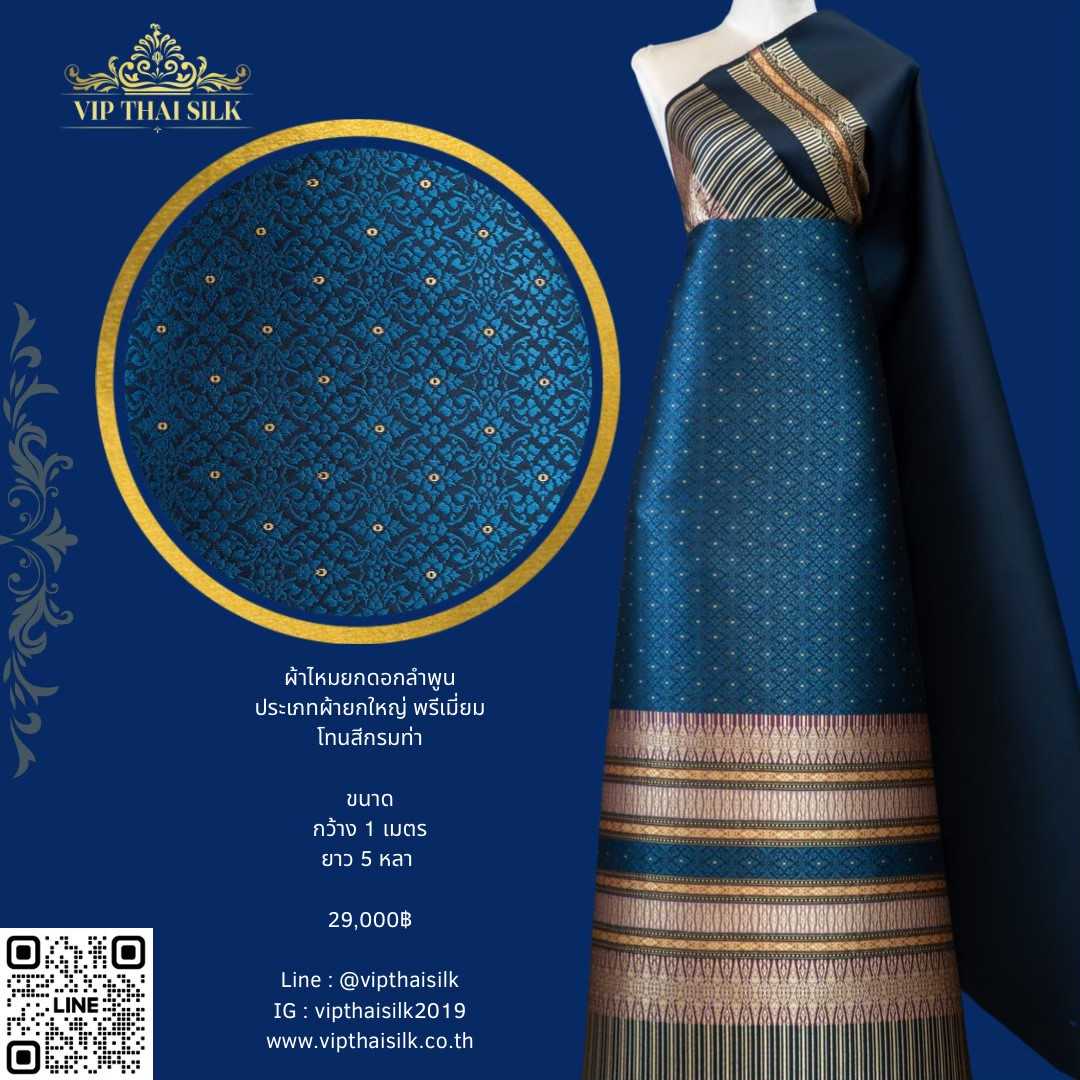 ผ้าไหมยกดอกลำพูนประเภทผ้ายกใหญ่พรีเมี่ยม โทนสีกรมท่า