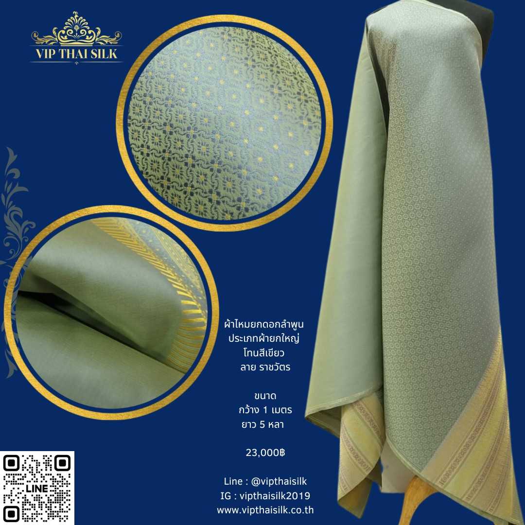 ผ้าไหมยกดอกลำพูน ประเภทผ้ายกใหญ่ โทนสีเขียว ลายราชวัตร