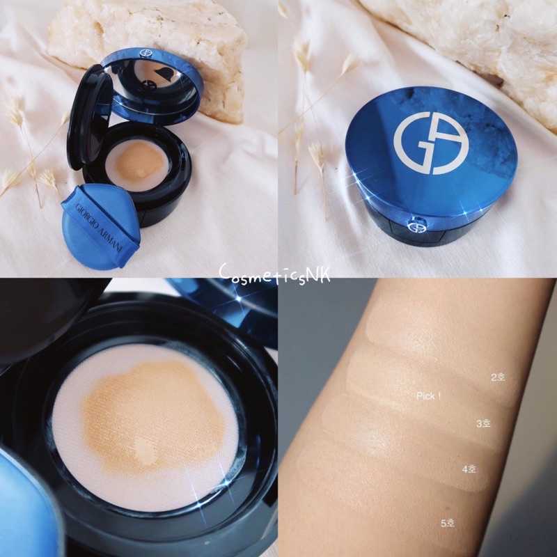 คุชชั่นจาก Giorgio Armani ที่คฉีกกรอบสุดๆ เปลี่ยนโฉมจากสีแดงร้อนแรง สู่สีน้ำเงินเรียบหรู นวัตกรรมใหม่ช่วยให้ผิวสวยเพอร์เฟ็กต์ ผสานเม็ดสีน้ำเงิน ‘Electric Blue Pigments’ ช่วยเพิ่มความสว่างให้ผิวที่แลดูเปล่งปลั่งขึ้นทันทีที่ใช้ ตาข่าย (mesh) ทำจากเส้นแพรไหมที่ดีที่สุดของอิตาลี สัมผัสโปร่งบาง ดีไซน์พิเศษเพื่อให้ได้ไซส์สำหรับการควบคุมเนื้อคุชชั่นได้อย่างพอดี 3 แบบ ไม่ว่าจะเป็น แตะ ลูบ หรือปาดคุชชั่น บิ้วล์ระดับการปกปิดได้ถึง full coverageให้สวยดังใจ คุชชั่นมีเนื้ออ่อนนุ่มแบบบาล์ม ซึ่งหลอมรวมเป็นหนึ่งเดียวกับผิวและช่วยปกป้องผิว พร้อมป้องกันรังสียูวีในระดับ SPF 50/PA +++ พิกเม้นต์สีน้ำเงินอิเลคทริคบลู อนุภาคประกายมุก และอณูแป้งซึ่งด้านในกลวง จะทำงานร่วมกันเพื่อมอบความเปล่งปลั่งให้กับผิวในทันที พร้อมอำพรางสัญญาณความหมองคล้ำทุกประเภท