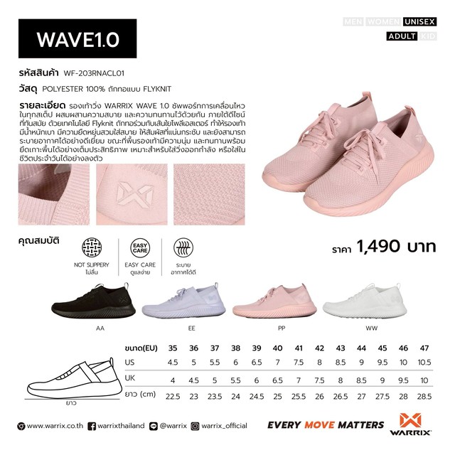 รองเท้าวิ่ง WARRIX WAVE 1.0 ซัพพอร์ทการเคลื่อนไหวในทุกสเต็ป ผสมผสานความสบาย และความทนทานไว้ด้วยกัน ภายใต้ดีไซน์ที่ทันสมัย