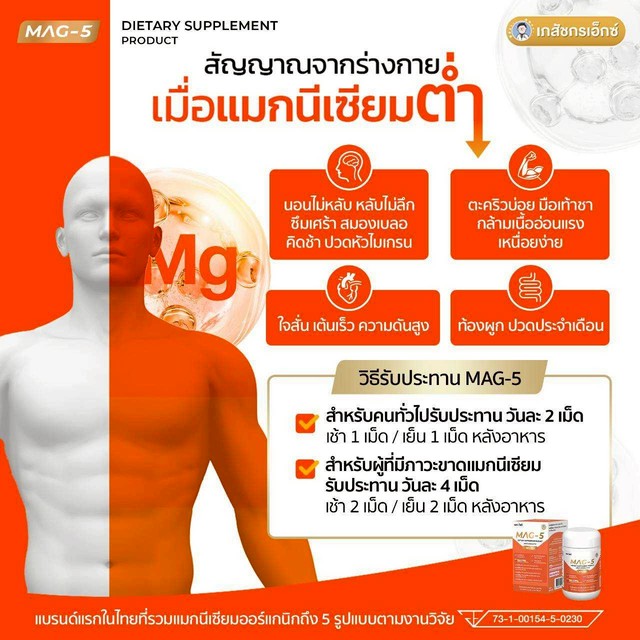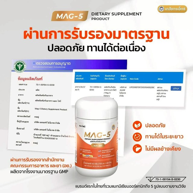 แมกนีเซียมรวม 5 ชนิด ดูดซึมดี อ่อนโยน ปลอดภัย ครอบคลุมสุขภาพ 5 ระบบ