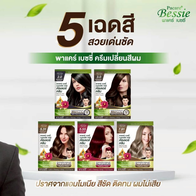 Pacare Bessi พาแคร์ เบซซี่ เนเชอรัล แฮร์ คัลเลอร์ ครีมเปลี่ยนสีผม ปิดผมขาว ไม่มีแอมโมเนีย