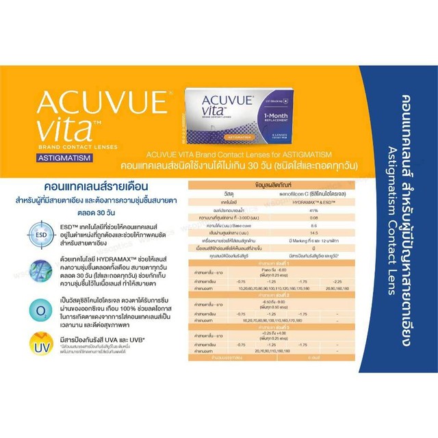 Acuvue Vita for Astigmatism คอนแทคเลนส์รายเดือนสายตาสั้นและเอียง (1 Box : 3 Pairs)