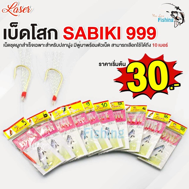 เบ็ดโสก SABIKI 999 เบ็ดชุดผูกสำเร็จ สำหรับตกปลาทะเลรวมฝูง ตกชายฝั่ง เลือกใช้ได้ขนาดเล็กถึงขนาดใหญ่ มีให้เลือก 10 เบอร์