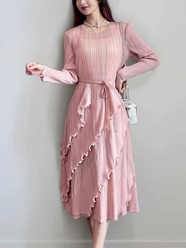 Pleatbynisa A601 เดรสอัดพลีท เนื้อผ้าPolyester100%