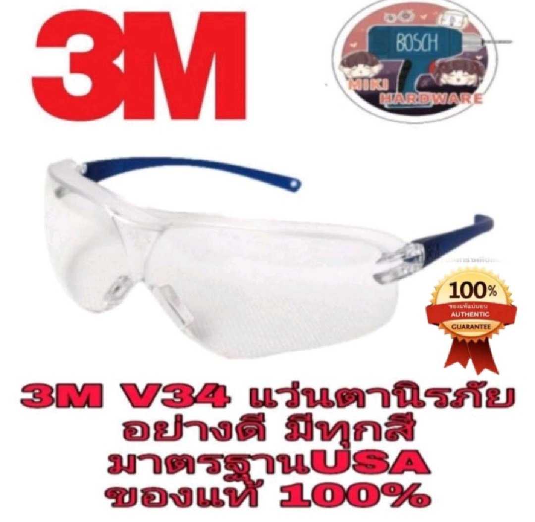 3M V34 แว่นนิรภัย อย่างดี มาตรฐาน USA ของแท้100% มี 3สีให้เลือกใช้
