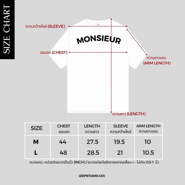 🔘 เช็ค Size ตาม Size Chart ก่อนกดสั่งซื้อ